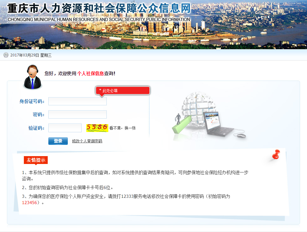 點擊進(jìn)入社保網(wǎng)站(個人社保查詢網(wǎng)址(http://ggfw.cqhrss.gov.cn/ggfw/index1.jsp))